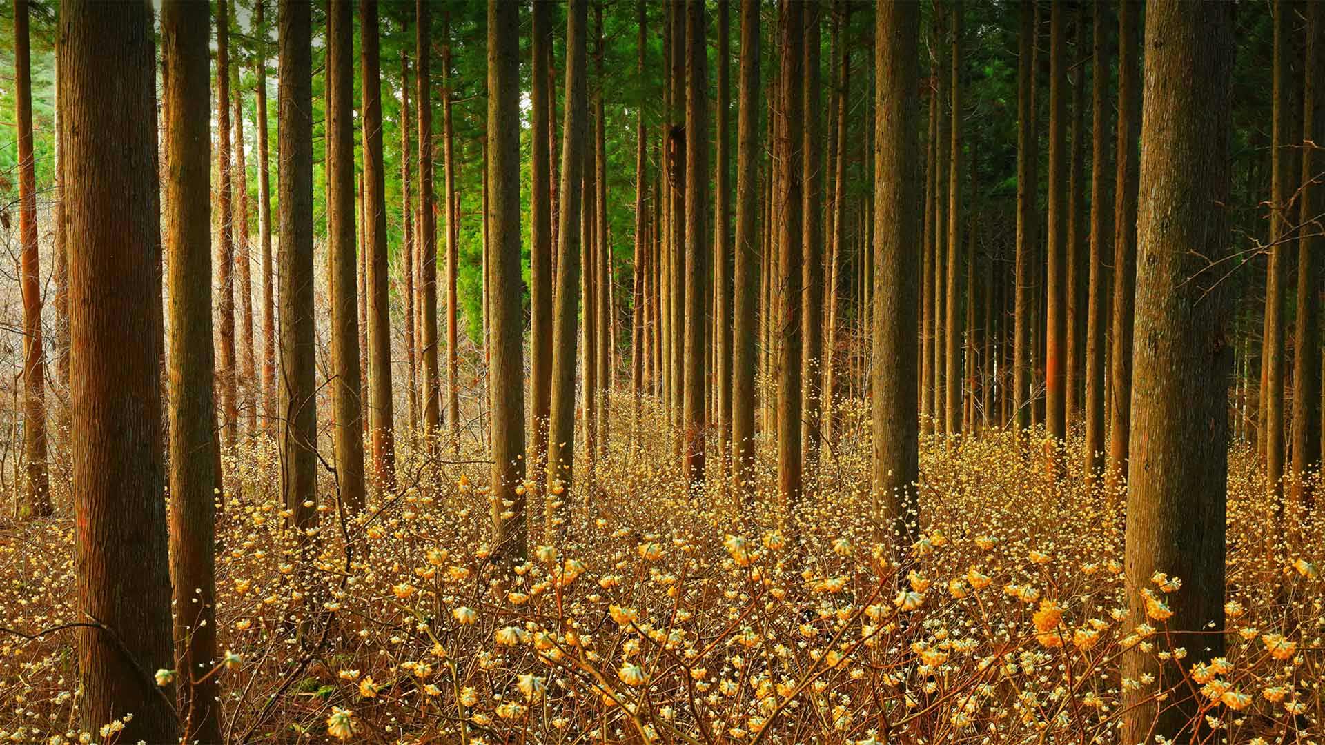 Mitsumata (aka paperbush) in a forest in Japan (© nattya3714/盖蒂图片社)