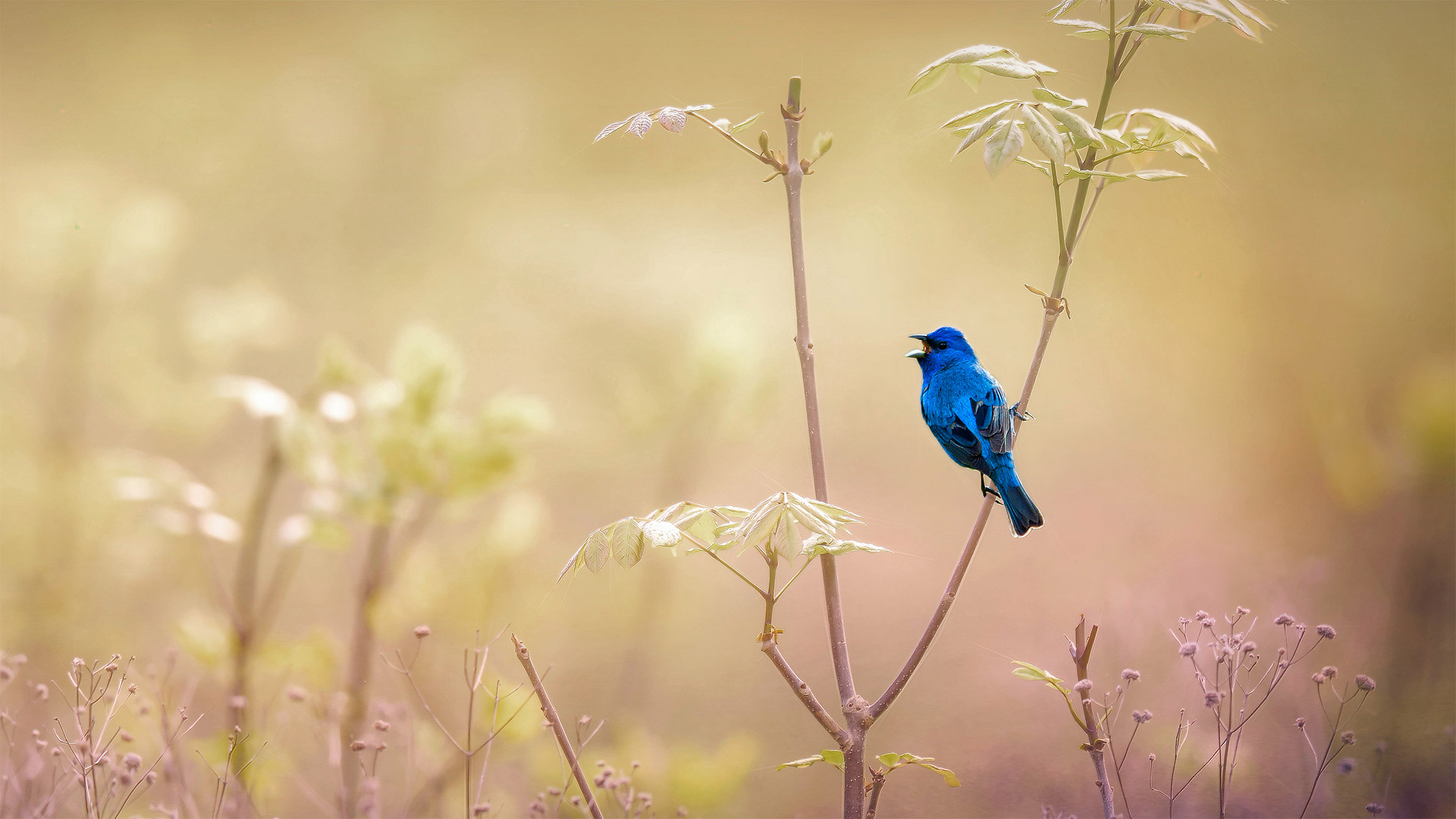 An indigo bunting at the John James Audubon Center at Mill Grove in Audubon, 宾夕法尼亚州 (© 维基·乔伦/盖蒂图片社)