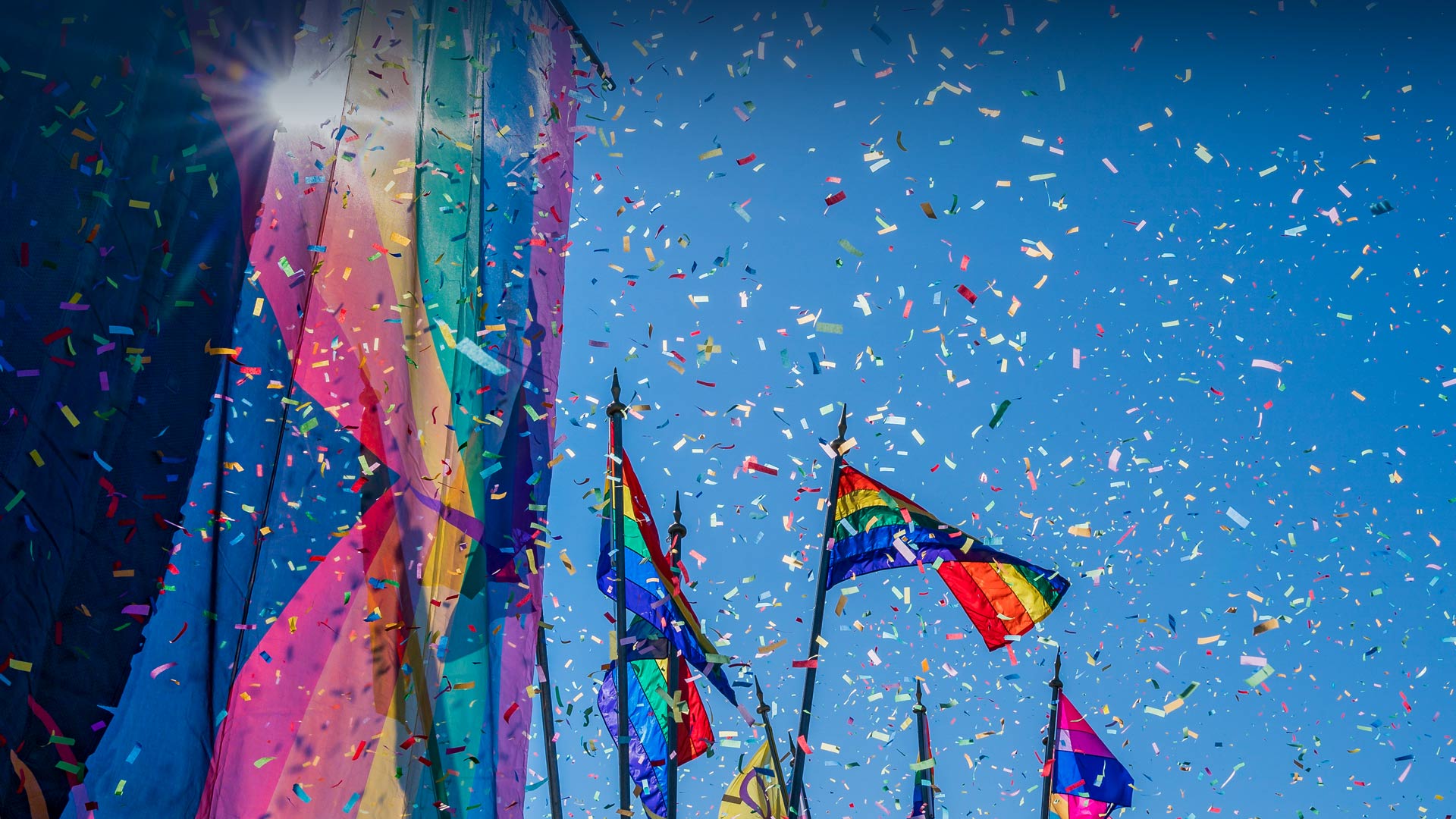 Rainbow flags and confetti